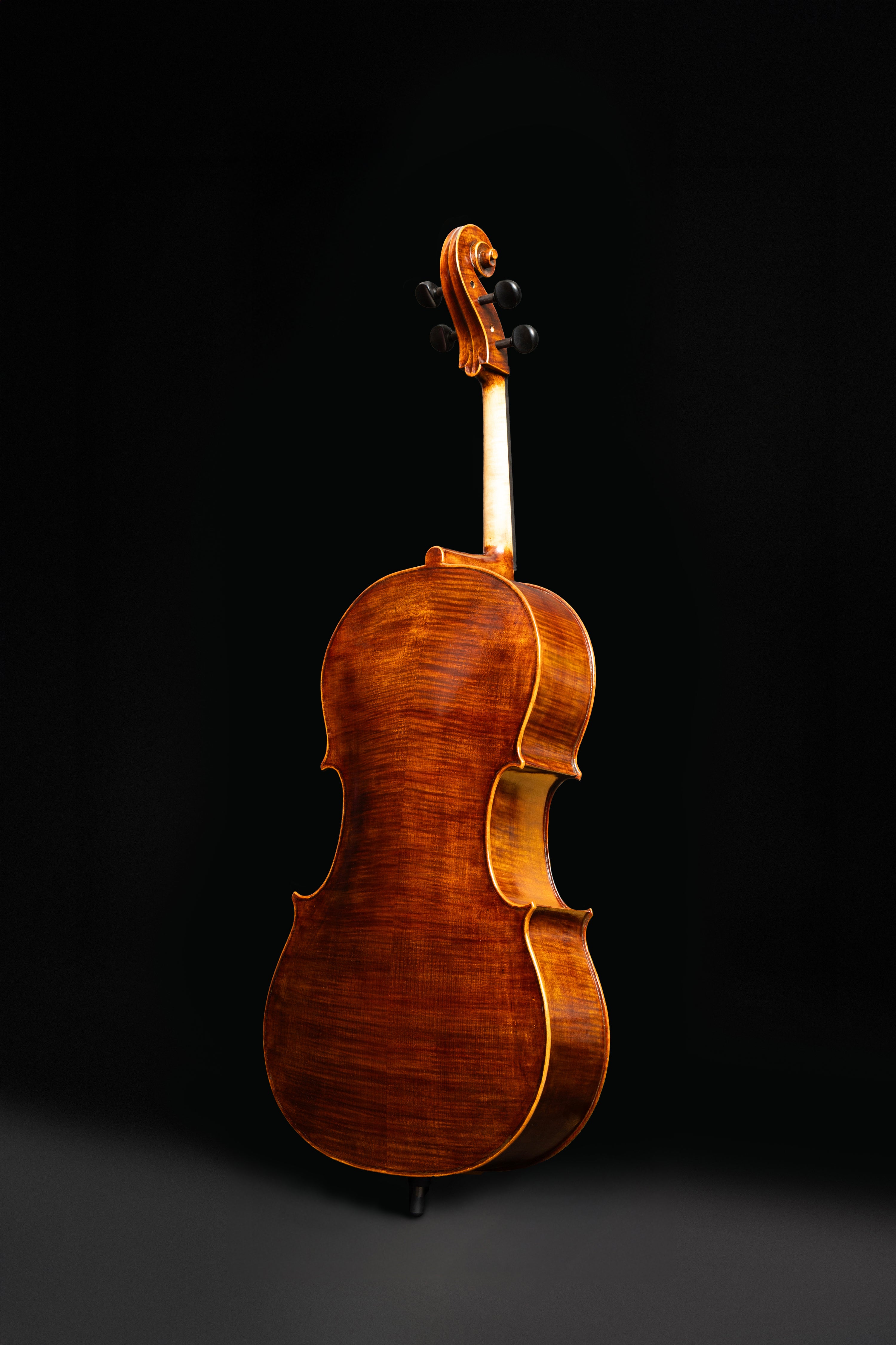 Além de seu visual admirável, este violoncelo distingue-se pela potência e amplitude acústica excepcionais. O som é profundo, quente e encorpado, com projeção impressionante e clareza que se mantém mesmo nos pianíssimos. Seu timbre equilibra graves intensos e vibrantes com agudos luminosos e cantantes, transmitindo uma riqueza harmônica que encanta intérpretes e ouvintes. A resposta imediata e precisa ao arco torna-o ideal para músicos exigentes que buscam um instrumento à altura de seus anseios artísticos.